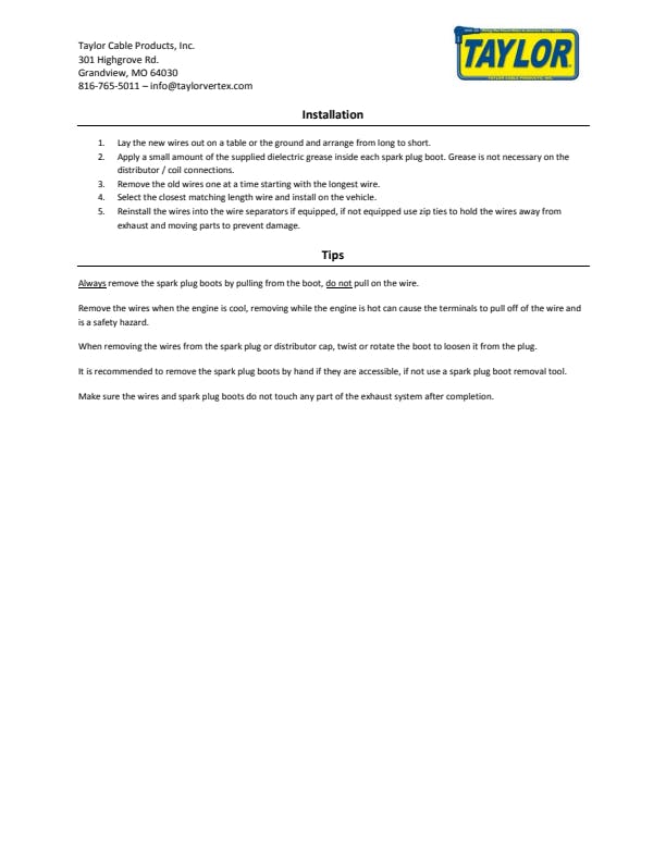 For over 90 years, Taylor Cable Products have been the top choice of racers and enthusiasts for its value and high-performance features. Taylor Cable is an icon of quality and customer satisfaction in the automotive performance and racing markets. We are proud to have our Ignition Wire Sets firing some of the fastest race and street vehicles in the world.